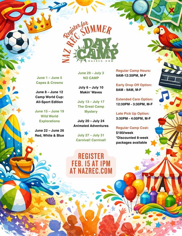 This week brings carnival fun to camp with games, themed days, and exciting activities throughout the week. Select campers will also take the stage during our 4th annual Naz Camp’s Got Talent, sharing their own talents in a supportive and high-energy environment.